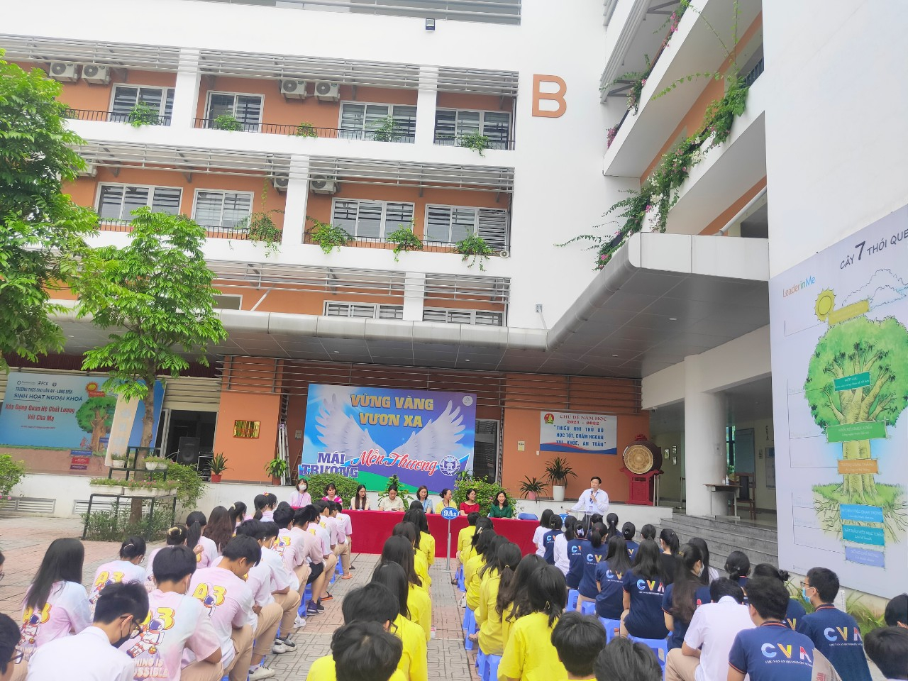 Năm học lớp 9 là một năm học vô cùng quan trọng, năm học cuối cùng của khối THCS và cũng là dấu mốc đặc biệt trong cuộc đời mỗi học sinh. Kết thúc lớp 9 cũng là lúc các em chia tay thầy cô, bạn bè đã cùng mình trưởng thành, chia tay mái trường nơi mình đã gắn bó để bước vào một kì thi chuyển cấp đầy căng thẳng trước khi chính thức trở thành học sinh lớp 10. Để động viên thêm tinh thần cho các em, vào lúc 9h30 sáng nay, ngày 15/06/2022, tại sân trường THCS Chu Văn An đã diễn ra buổi gặp gỡ giữa Ban Giám hiệu, giáo viên và toàn thể các em học sinh khối 9 khóa đầu tiên của trường.