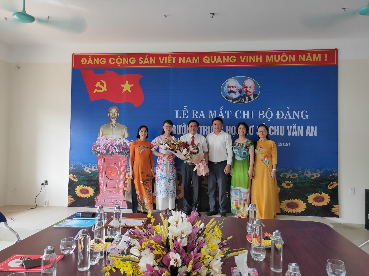 Tập thể cán bộ giáo viên, nhân viên nhà trường trong buổi ra mắt Chi bộ trường THCS Chu Văn An