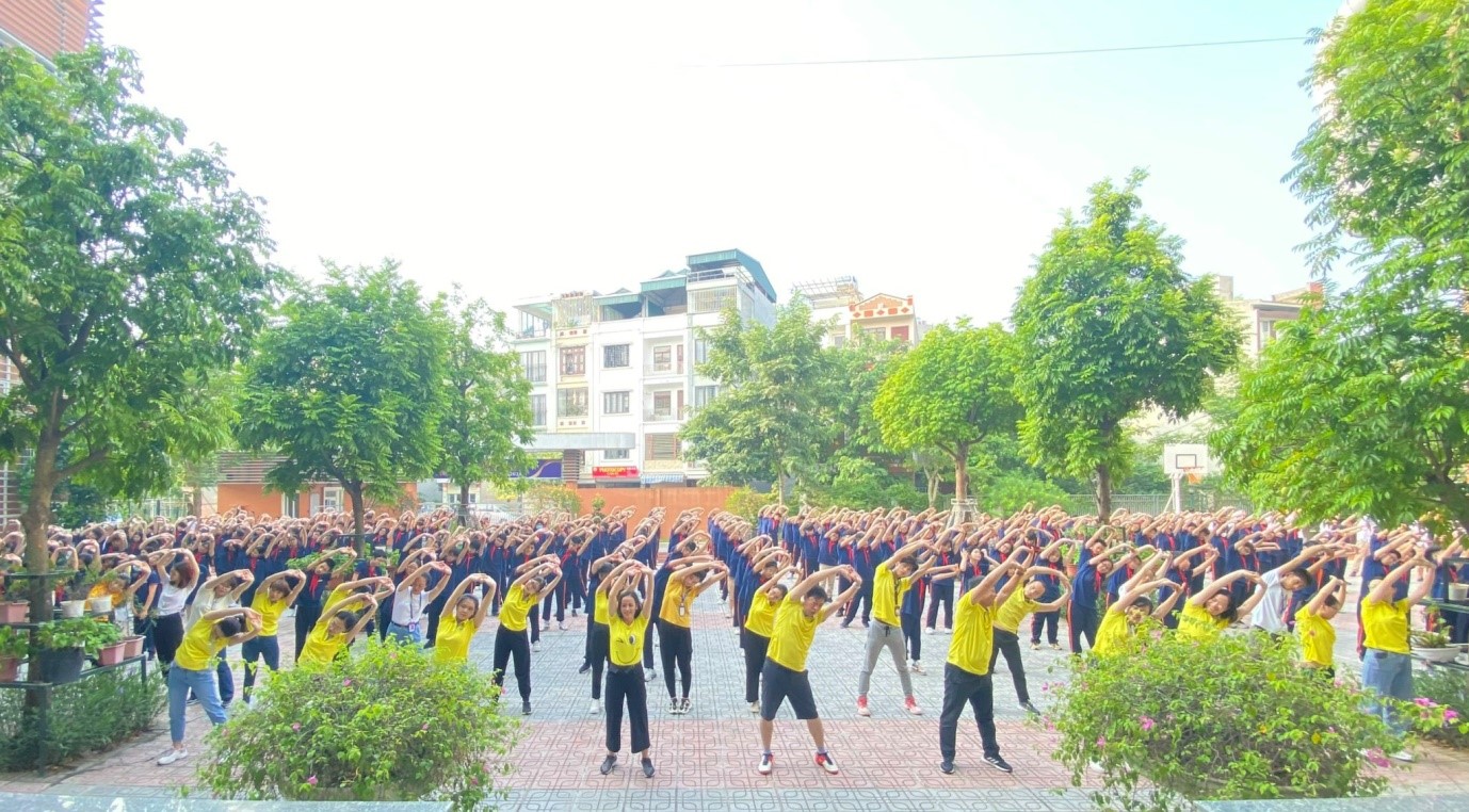 Toàn thể GV và HS Trường THCS Chu Văn An tham gia khởi động trước buổi chạy