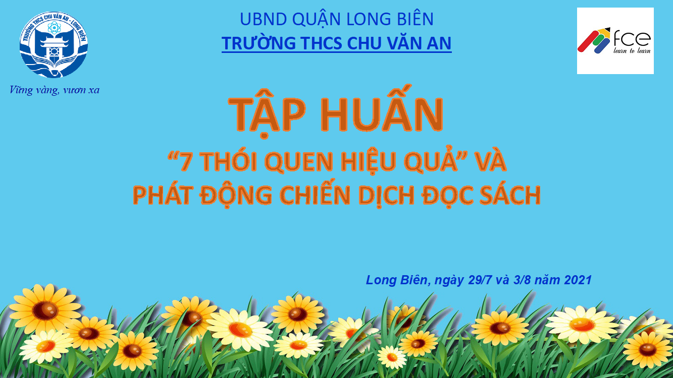 Trong các ngày cuối tháng 7 và đầu tháng 8, Ban kĩ năng sống kết hợp với công ty FCE Việt Nam đã tổ chức tập huấn “7 thói quen hiệu quả” và phát động chiến dịch đọc sách cho cán bộ giáo viên nhân viên nhà trường. Chương trình tập huấn, bồi dưỡng đội ngũ được kéo dài 5 ngày. Ở đây, chùng tôi được học:
