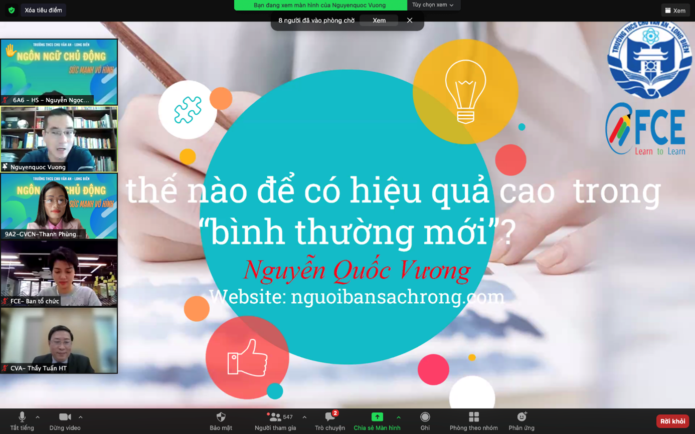 Nối tiếp chuyên đề, diễn giả Nguyễn Quốc Vương trao đổi với các em học sinh về những đòi hỏi của xã hội hiện tại và tương lai. Sự phát triển như vũ bão của khoa học kỹ thuật đã dẫn đến những sự thay đổi liên tục và sâu sắc trong đời sống xã hội. Để có đủ hành trang bước vào thời đại mới, học sinh ngay từ bây giờ cần trang bị cho mình năng lực tự chủ - sáng tạo, năng lực hợp tác, năng lực giao tiếp – kiểm soát. Đây cũng là những năng lực mà chương trình học ở trường THCS Chu Văn An sẽ chú trọng bồi dưỡng cho các bạn học sinh, giúp các em thêm tự tin ở bản thân, trở thành những người thành công trong tương lai.