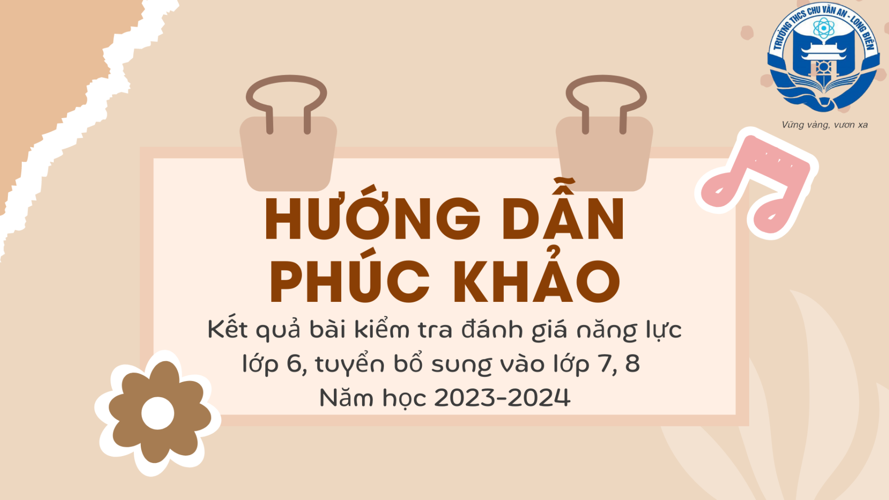 Hội đồng tuyển sinh trường THCS Chất lượng cao Chu Văn An hướng dẫn về việc phúc khảo kết quả bài kiểm tra đánh giá năng lực khối lớp 6, tuyển bổ sung khối 7,8 năm học 2023-2024 như sau: