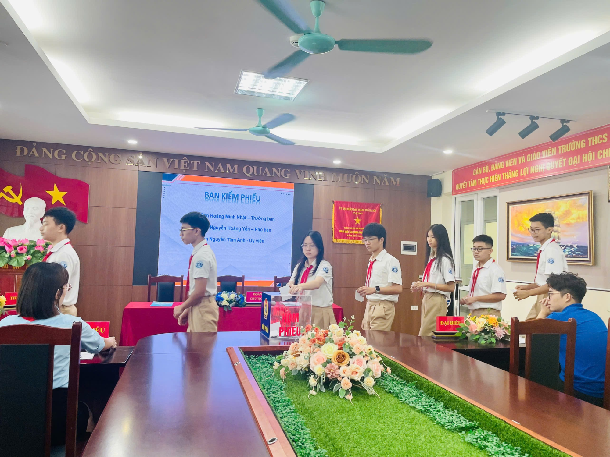 Đại hội đã tiến hành bầu Ban Chỉ huy Liên đội nhiệm kỳ 2025 – 2026 gồm 11 bạn có năng lực, phẩm chất tốt, được đội viên tín nhiệm cao. Các bạn trong BCH mới bày tỏ quyết tâm đoàn kết, gương mẫu, phát huy tinh thần trách nhiệm để hoàn thành tốt nhiệm vụ, đưa Liên đội ngày càng phát triển.